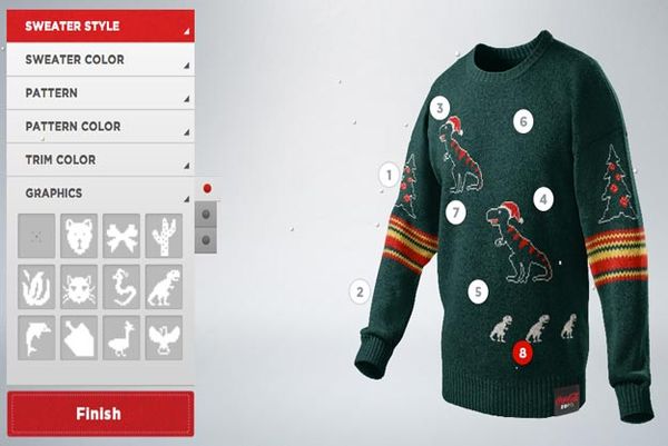 Generator puloverjev je uporabnikom omogočal, da izberejo stil puloverja (od pulija do v-ovratnika) in nato prilagodijo barve, vzorce in slike, ki se pojavijo na najbolj grdem prazničnem puloverju.