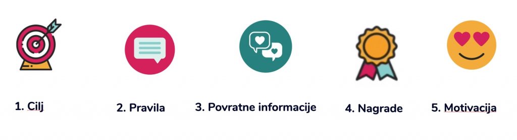 Vsaj 5 komponent je ključnih, da končna rešitev IGRIFIKACIJE oziroma IGRE ustvari učinkovito povezavo z uporabnikom: