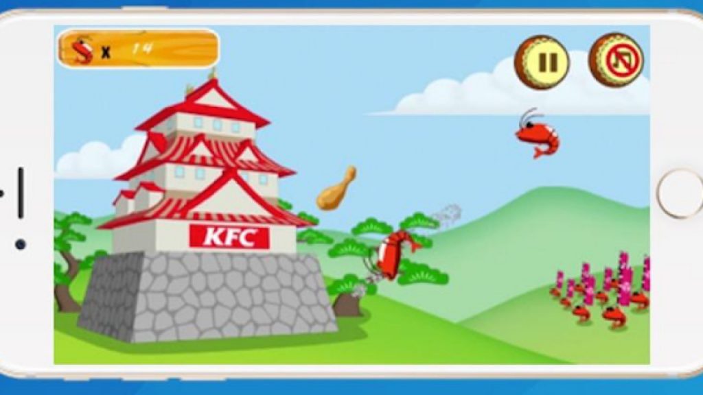 Še en zanimiv primer igre z zelo jasnim promocijskim ciljem, predstaviti novo jed in povabiti uporabnike k nakupu, so ustvarili na Japonskem. KFC in njihova igra Shrimp attack jim je dejansko povišala promet na index 106 glede na leto prej, igra pa je neposredno v poslovalnico s kuponi iz igre pripeljala več kot 40.000 uporabnikov.
