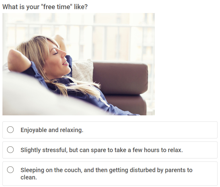• Začnite preprosto. Naj bodo vprašanja enostavna: Začnite npr. s spolom ali starostjo. Nadaljujte z vprašanji, ki so zabavna in zanimiva za vaše uporabnike, saj gre za kviz, ne za test.