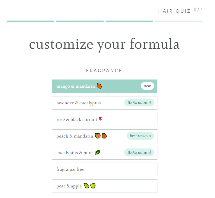 Podjetje Function of Beauty je ustvarilo kviz za lase in kožo, s katerima spodbuja prijave svojih uporabnikov in priporoča izdelke, ki temeljijo na njihovih odgovorih.
