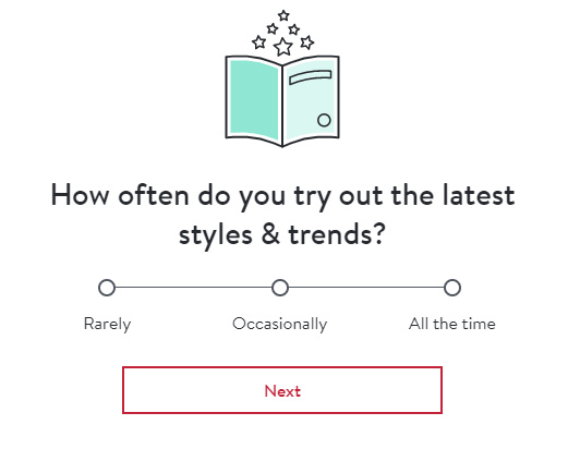 Ta segmentacijski kviz stilistom podjetja Stitch Fix pomaga izbrati popolne kose oblačil, ki ustrezajo okusu, velikosti in cenovnem razponu svojih uporabnikov. Po končanem kvizu se lahko odločijo kako pogosto bi želeli prejemati specifično za njih izbrana oblačila, ki jih preizkusijo kar v udobju svojega doma.