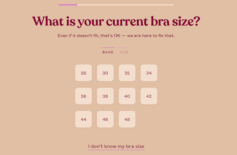 Kupovanje ustreznih nedrčkov je lahko velik izziv, zato je ta prodajni kviz odličen način, da predstavnice nežnejšega spola ugotovijo kater je najbolj primeren za njih. Kviz zastavi vprašanja o strankinih izkušnjah z nedrčki in preferencah. Na podlagi odgovorov in v zameno za njen elektronski naslov, uporabnici predstavi nedrček priporočen zanjo, ki najbolj ustreza njenim potrebam.