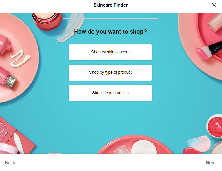 Ta kviz uporabnike najprej vpraša o kriterijih nakupovanja. Tako lahko Sephora segmentira potencialne stranke na podlagi njihove izbire in jih lahko učinkovito ponovno usmeri. Kviz se nadaljuje različno za ljudi, ki iščejo določen izdelek, ali ljudi z določeno težavo s kožo.